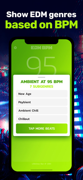 Become a more dynamic EDM DJ or Producer! EDM BPM is a BPM counter that reveals 100+ subgenres of Electronic Dance Music based on genre and BPM.